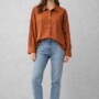 CAMISA COLOR TEJA DE MANGA LARGA CON DETALLES EN LAS MANGAS. TALLA ÚNICA.
