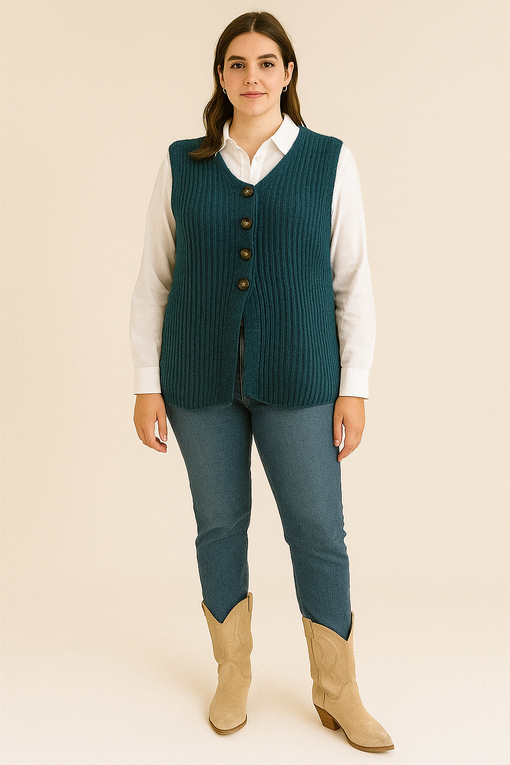 CHALECO AZUL DE PUNTO BOBO CON BOTONES. ESCOTE DE PICO. TALLA ÚNICA DESDE LA 36-42.