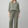 CONJUNTO ARRUGADO VERDE KAKI. CAMISA DE MANGA CORTA Y PANTALÓN PALAZZO CON CINTURA ELÁSTICA. TALLA ÚNICA.