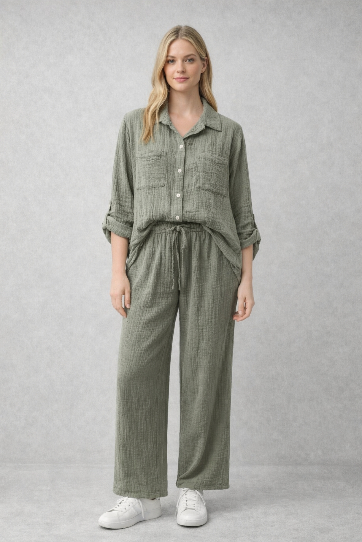 CONJUNTO ARRUGADO VERDE KAKI.